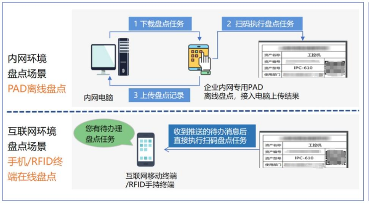 移動(dòng)智能應(yīng)用:通過RFID等智能標(biāo)簽和智能手持終端設(shè)備,實(shí)現(xiàn)在資產(chǎn)現(xiàn)場(chǎng)的快速數(shù)據(jù)采集,實(shí)現(xiàn)智能范圍管控和資產(chǎn)快速盤點(diǎn)。