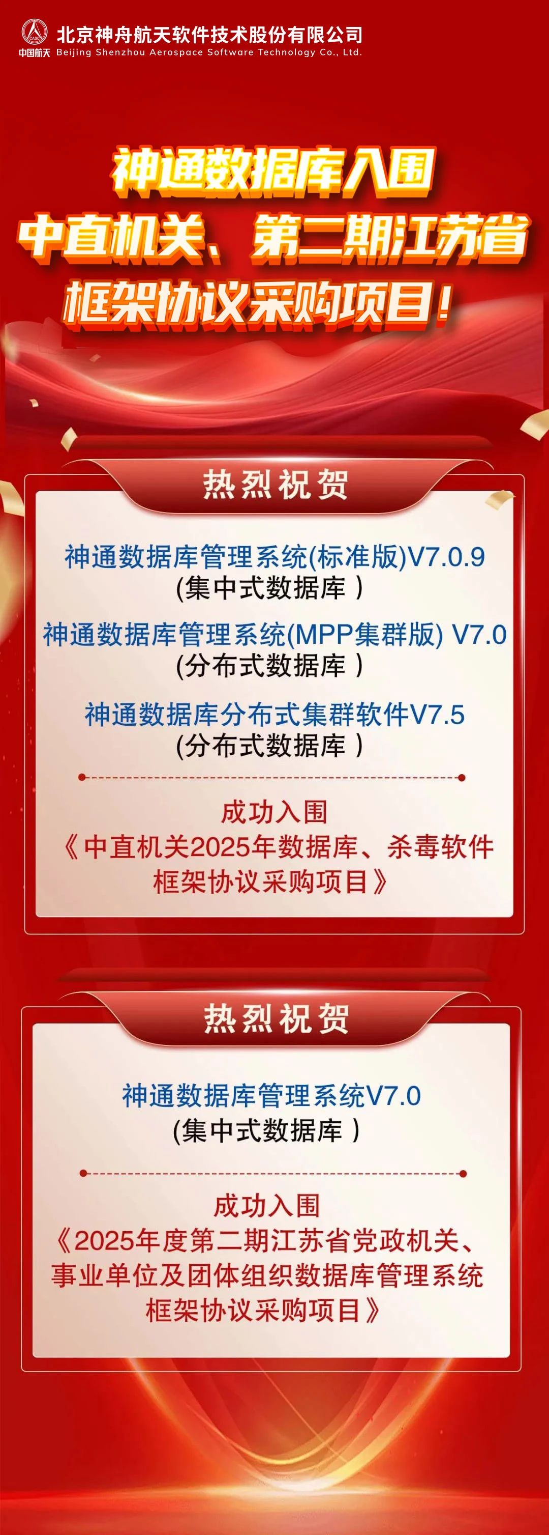 神通數(shù)據(jù)庫入圍中直機關(guān)、第二期江蘇省框架協(xié)議采購項目!