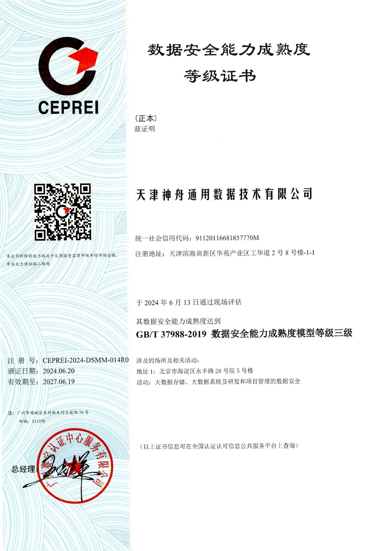 近日,神軟公司下屬天津神舟通用數(shù)據(jù)技術(shù)有限公司(以下簡稱:神通公司)正式獲頒DSMM數(shù)據(jù)安全能力成熟度三級認證證書,標志著神通公司數(shù)據(jù)安全管理能力邁上新臺階。
