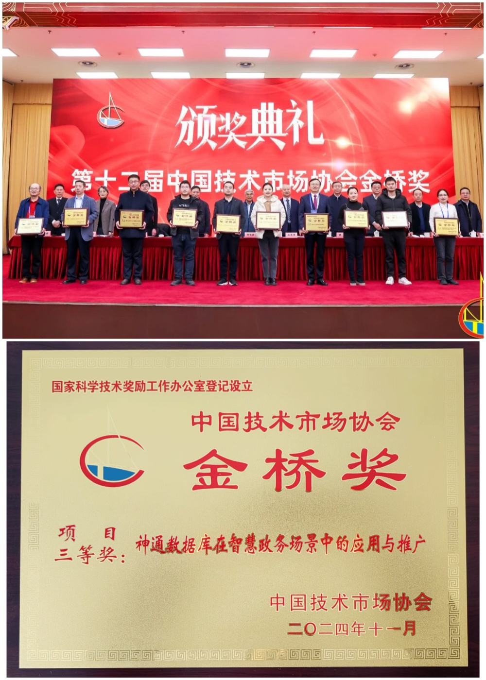 近日,第十二屆中國(guó)技術(shù)市場(chǎng)協(xié)會(huì)金橋獎(jiǎng)表彰大會(huì)在北京召開(kāi),神軟子公司神通公司申報(bào)的《神通數(shù)據(jù)庫(kù)在智慧政務(wù)場(chǎng)景中的應(yīng)用與推廣》項(xiàng)目榮獲獎(jiǎng)項(xiàng)。該獎(jiǎng)項(xiàng)于2002年由國(guó)家科學(xué)技術(shù)獎(jiǎng)勵(lì)工作辦公室批準(zhǔn)設(shè)立,是全國(guó)技術(shù)市場(chǎng)行業(yè)的最高獎(jiǎng)項(xiàng),每?jī)赡暝u(píng)選一次,旨在獎(jiǎng)勵(lì)在全國(guó)技術(shù)市場(chǎng)中做出突出貢獻(xiàn)的先進(jìn)集體、先進(jìn)個(gè)人和先進(jìn)項(xiàng)目,以促進(jìn)科技成果的轉(zhuǎn)化,推動(dòng)我國(guó)技術(shù)市場(chǎng)的繁榮和發(fā)展。