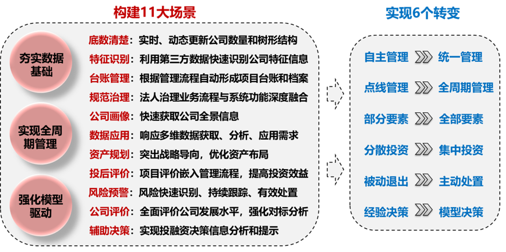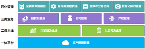 神軟資產(chǎn)運(yùn)營(yíng)管理系統(tǒng)以投融資項(xiàng)目、公司兩條主線為抓手,圍繞投融資管理、公司管理、產(chǎn)權(quán)管理三類(lèi)業(yè)務(wù)進(jìn)行構(gòu)建。