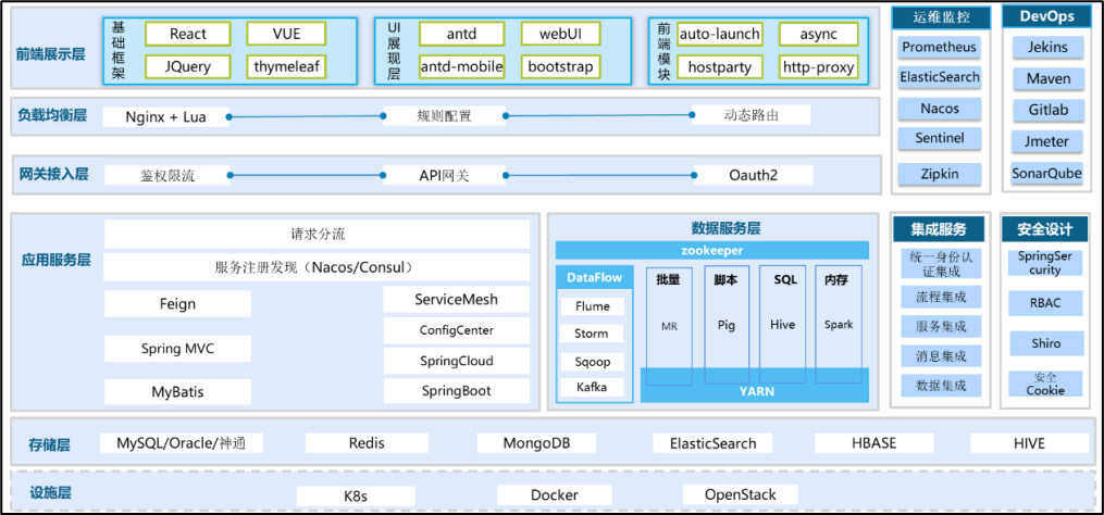 技術(shù)架構(gòu):基于ASP+微服務(wù)架構(gòu),融合低代碼快速開(kāi)發(fā)、容器云平臺(tái)等技術(shù)手段,實(shí)現(xiàn)快速開(kāi)發(fā)、迭代、部署等開(kāi)發(fā)運(yùn)維一體化。
