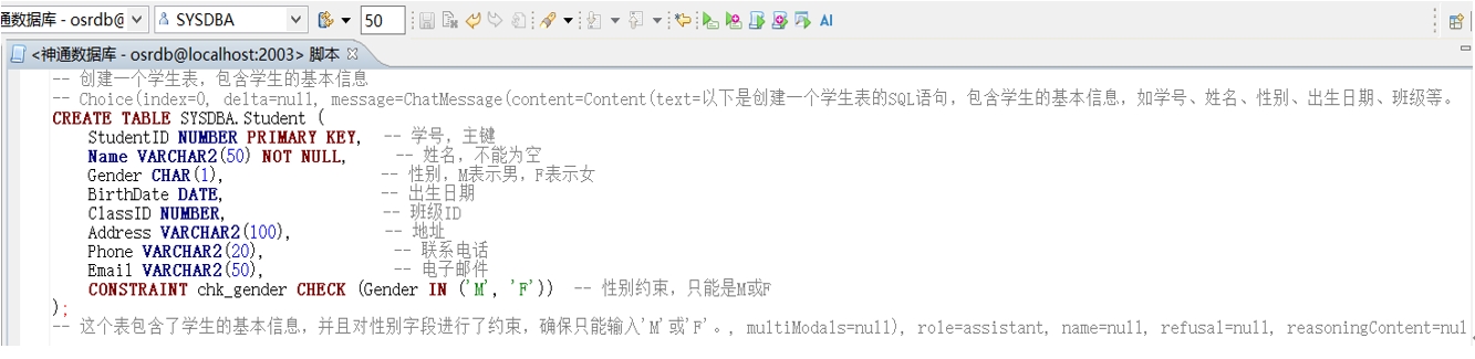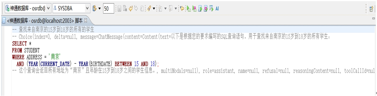 為進(jìn)一步賦能企業(yè)高效利用數(shù)據(jù)資源,神通數(shù)據(jù)庫的DBStudio工具中引入了DeepSeek能力改寫了原有的AI智能補(bǔ)全功能,使用者能夠以對(duì)話的便捷方式,將自然語言無縫轉(zhuǎn)化為SQL及復(fù)雜查詢語句,這一功能徹底扭轉(zhuǎn)了以往數(shù)據(jù)庫交互依賴專業(yè)編碼的局面,升級(jí)為“全民對(duì)話”的模式,大大降低了企業(yè)數(shù)據(jù)驅(qū)動(dòng)能力的技術(shù)門檻。