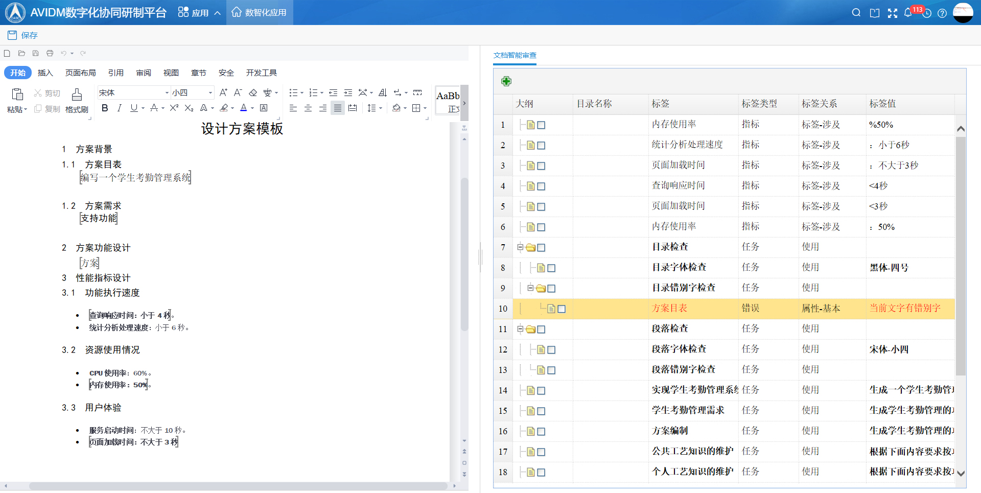 調(diào)用DeepSeek大模型的指標抽取與分析能力, 通過在系統(tǒng)中內(nèi)置合規(guī)性規(guī)則庫(如結構設計文件檢查規(guī)則、工藝設計文件檢查規(guī)則等),以及各種文檔模板的格式規(guī)范性要求,自動檢查文檔的格式規(guī)范性、內(nèi)容完整性和邏輯矛盾,支持多文件關聯(lián)審核。